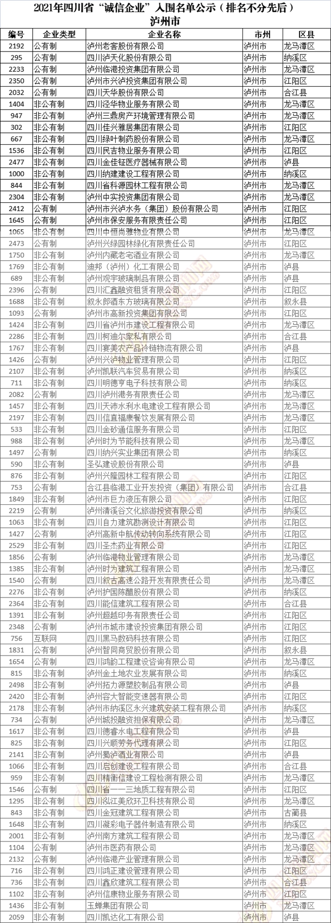 誠(chéng)信企業(yè)公示名單如下(排名不分先后):